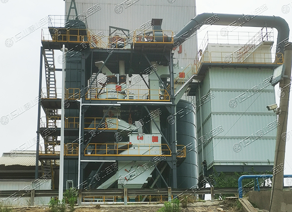 原料經(jīng)過電子秤進(jìn)入到皮帶輸送機(jī)中,由全封閉的提升機(jī)將物料入到五孔碾磨制砂機(jī)內(nèi)進(jìn)行破碎處理,再由空氣篩對(duì)破碎后的物料進(jìn)行篩分、選粉處理,篩分后的較大物料會(huì)返回五孔碾磨制砂機(jī)中進(jìn)行二次破碎,符合要求的砂子則由傳送帶輸送至成品倉(cāng)中;篩分過程中的粉塵會(huì)經(jīng)粗細(xì)粉分離機(jī)進(jìn)入到布袋收塵器內(nèi),而其中較大的粗顆粒會(huì)在粗細(xì)粉分離機(jī)的作用下,按需求在成品砂中進(jìn)行回?fù)剑?xì)粉塵將通過風(fēng)力進(jìn)入到布袋收塵器,作為副產(chǎn)品進(jìn)行使用。